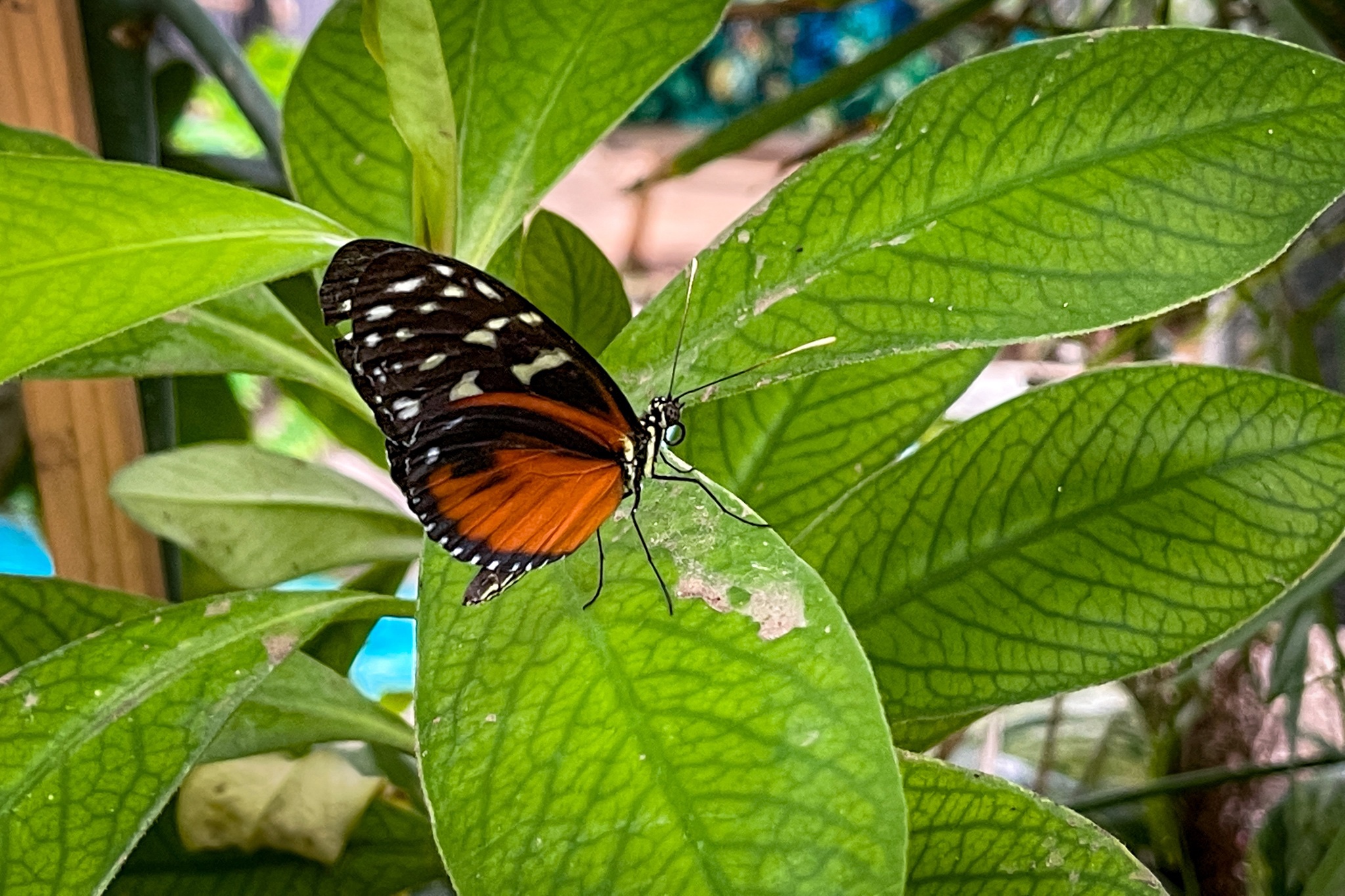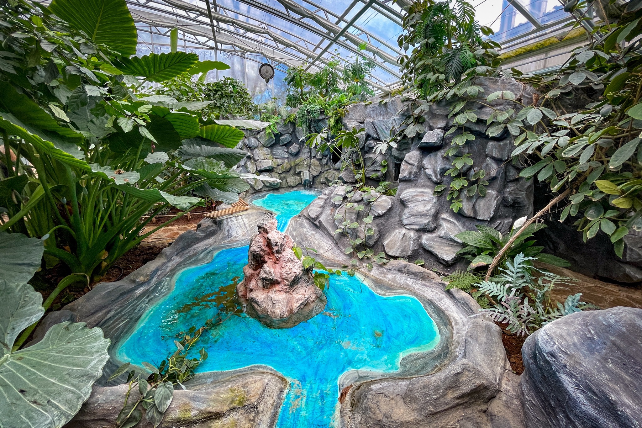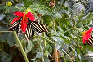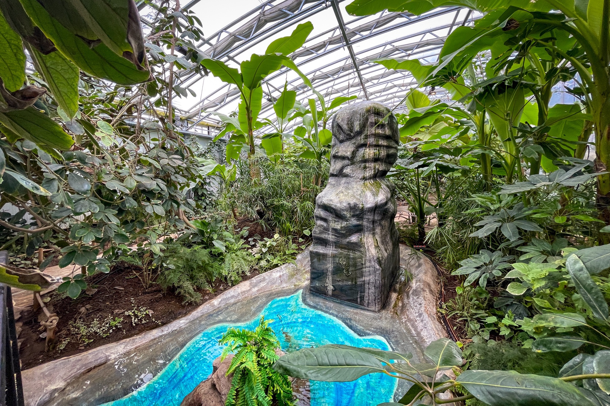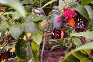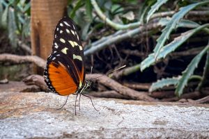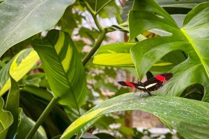 Anschliesend schauten wir uns die Schmetterlinge an. Diese sind in einen großen Glashaus samt Wasserfall und Höle untergebracht. Beides ist auch mit einen Kinderwagen zu beweltigen.